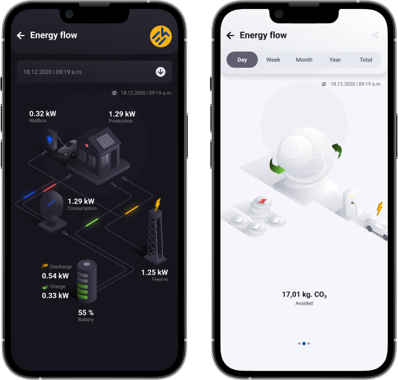Die App leistet einen Beitrag, um die Nutzung erneuerbarer Energien zu vereinfachen und hilft zusätzlich Kosten zu reduzieren und CO2 Emissionen einzusparen. Leistungsberichte unterstützen Investoren und staatliche Programme. Die App hilft, den Eigenverbrauch zu optimieren und den Energiefluss effizient zu steuern.