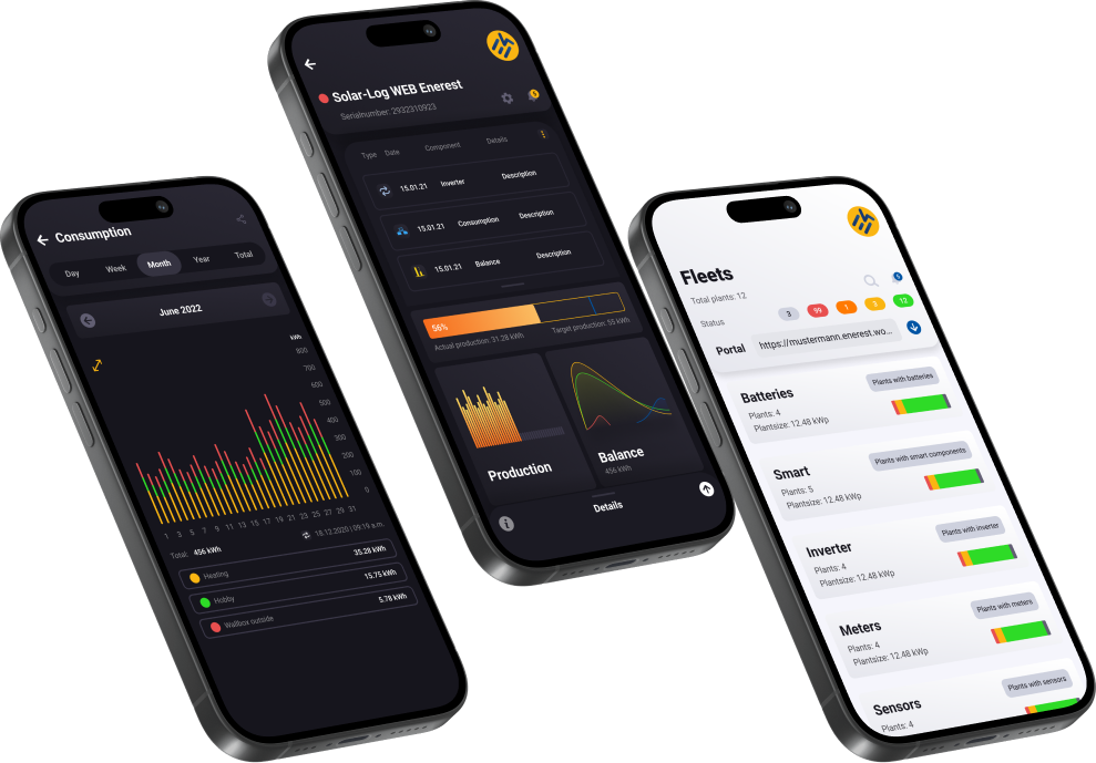 Mit Enerest ToGo erhalten Nutzer Echtzeit-Daten zur PV-Anlage, darunter Ertrag, Effizienz und Stromverbrauch. Abweichungen können sofort erkannt und behoben werden. Analyse-Tools bieten Statistiken und Diagramme zur Performance-Überwachung.